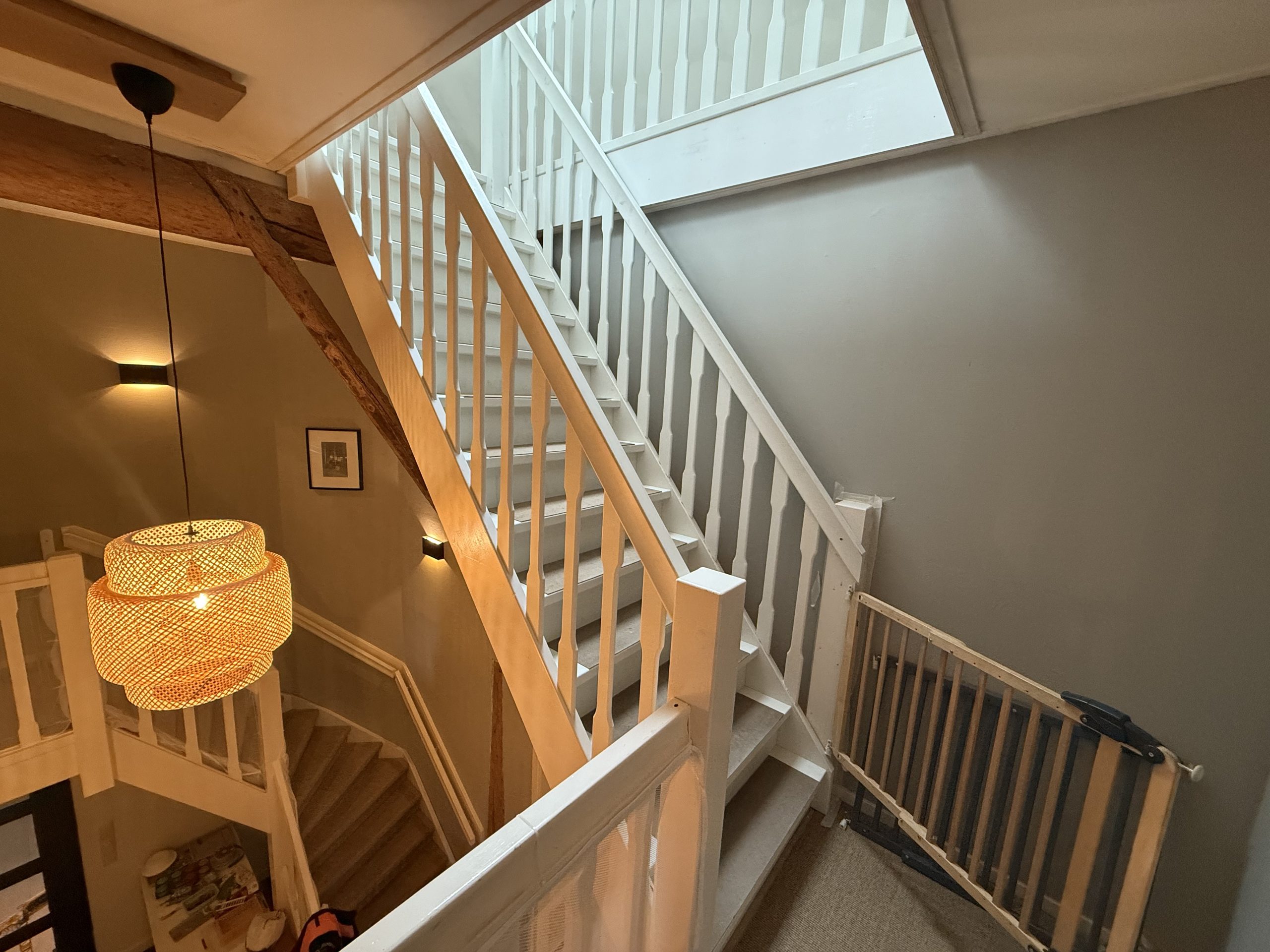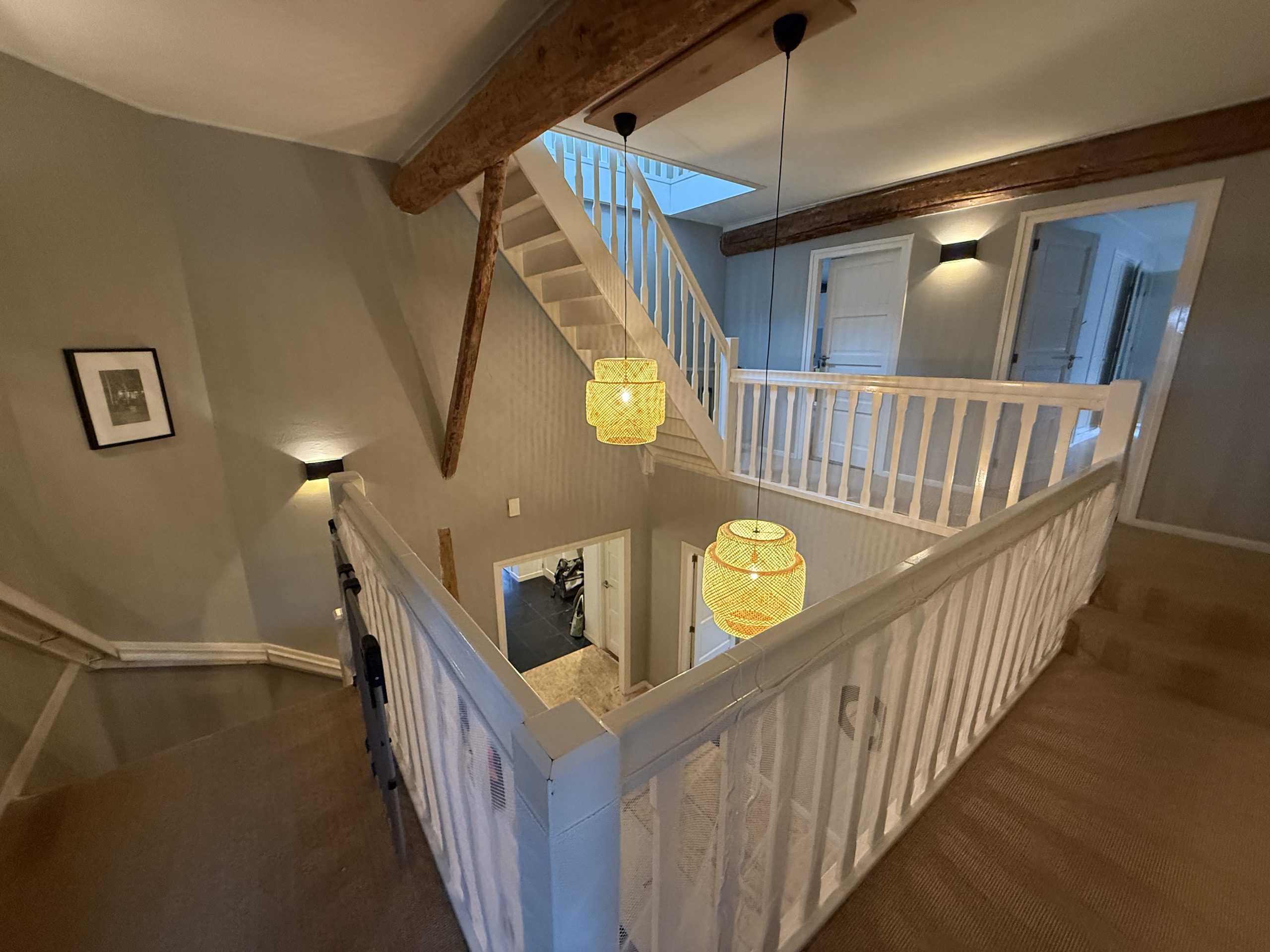 De volledige zolderverdieping is omgetoverd tot een comfortabele en praktische leefruimte. We plaatsten maar liefst vijf dakramen, waaronder een luxe cabrio-dakraam, voor een optimale lichtinval en een ruimtelijk gevoel. De zolder is afgewerkt met nieuwe scheidingswanden, strak stucwerk en een volledig geïsoleerde vloer. Daarnaast is er een vaste trap vanaf de eerste verdieping gerealiseerd, waardoor de ruimte perfect toegankelijk is.